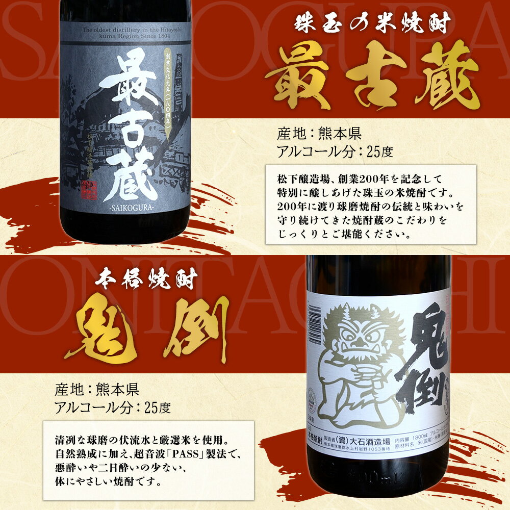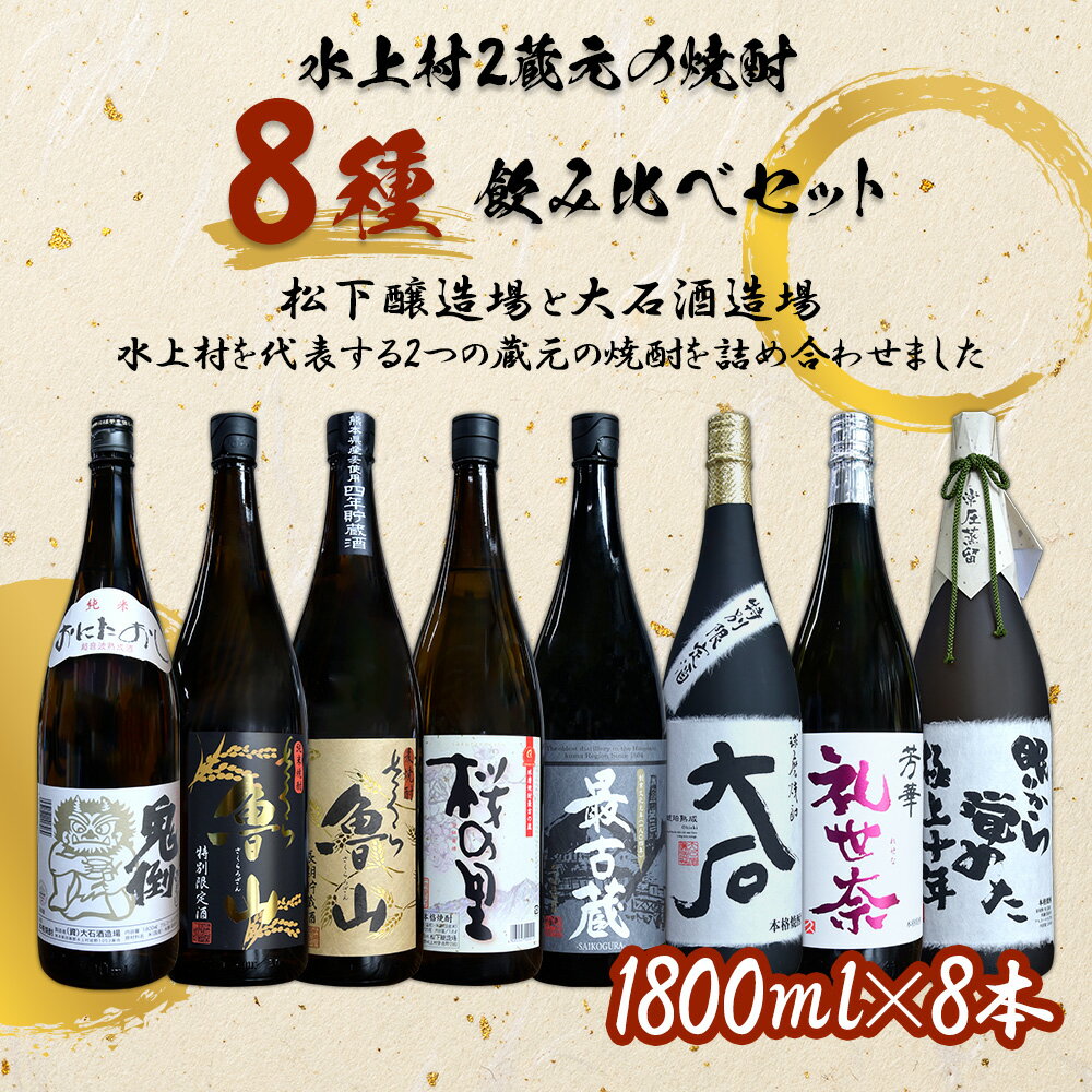 【ふるさと納税】 水上村2蔵元の焼酎 8種飲み比べセット 計14.4L お酒 酒 米焼酎 麦焼酎 最古蔵 鬼倒 さくら魯山 さくらの里 大石 礼世奈 眠りから覚めた極上十年 熊本県 水上村