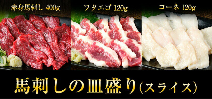 - 【ふるさと納税】【楽天限定】馬刺しの皿盛り(スライス)計640g【熊本肥育】 赤身400g/フタエゴ120g/コーネ120g(タレ5ml×6袋) 《30日以内に出荷予定(土日祝除く)》