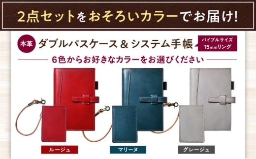 - 本革バイブルサイズシステム手帳(15mmリング)とダブルパスケースセット グレージュ 滋賀県長浜市/株式会社ブラン・クチュール [AQAY451] パスケース 本革 セット