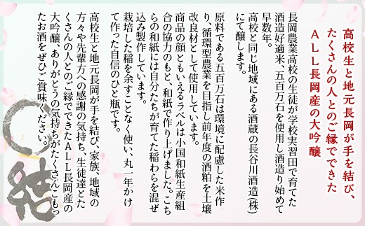 67-13B長岡農業高校生が育てた米で醸したお酒