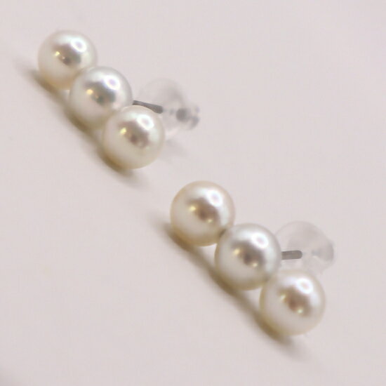 - 【ふるさと納税】2053 Pt900 無調色あこやベビー真珠4.5~5.0mm 3連ピアス