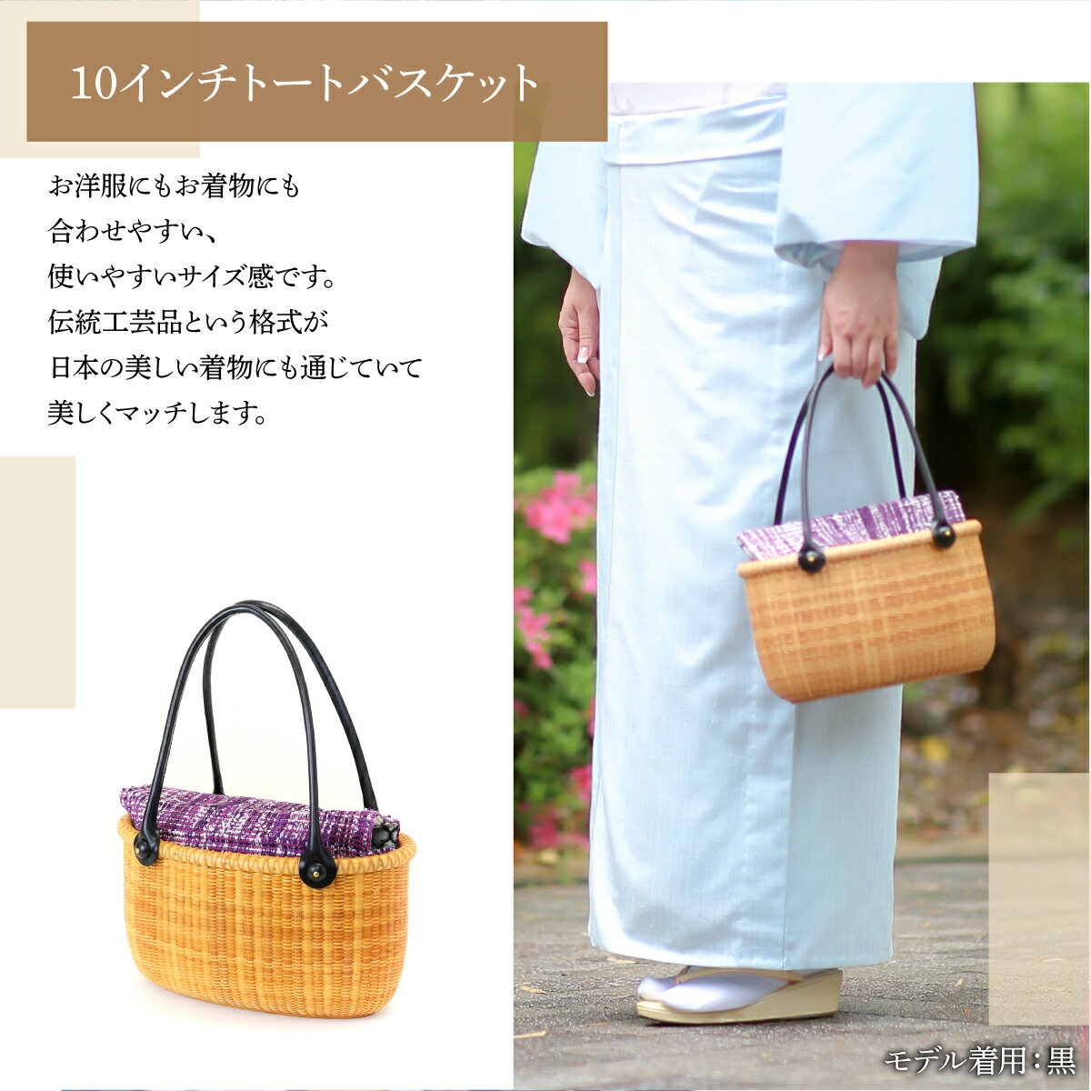 【ふるさと納税】【選べるハンドルカラー】ナンタケットバスケット 10インチトートバスケット / かごバッグ トートバッグ かばん アメリカの伝統工芸品 着物 飴色 黒