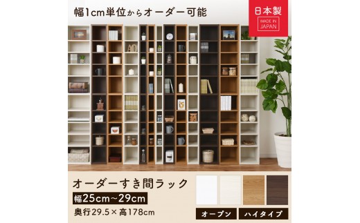 - 【完成品でお届け】オーダーすき間ラック〔幅29cm・オープン・ハイタイプ〕(オーク)すき間ラック 日本製 国産 隙間収納 ラック 本棚 スリム 薄型 縦長 オーダー 棚 隙間収納棚 漫画 収納 AKANBEE02510-29-OAK
