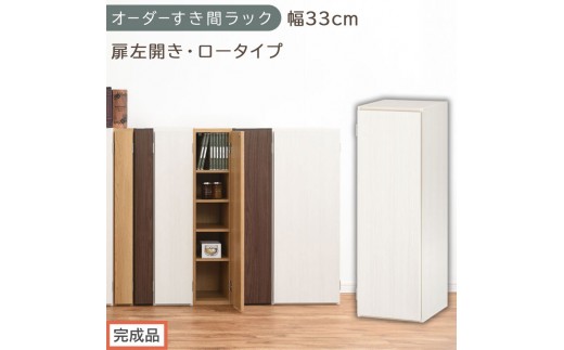 - 【完成品でお届け】オーダーすき間ラック〔幅33cm・扉左開き・ロータイプ〕(ホワイトウッド)すき間ラック 収納棚 扉付き スリム 約 奥行32 高さ90 ロータイプ オーダーラック キッチン AKANBE400085-33L-WWO