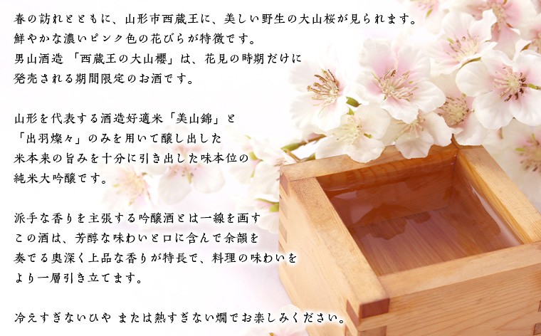 『期間限定』男山 純米大吟醸 西蔵王の大山櫻 1.8L×1本【令和9年3月中旬~発送】 FZ22-918 山形 山形県 山形市 日本酒 桜 さくら サクラ