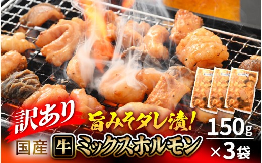 - 【訳あり】国産牛 ミックスホルモン 計450g(150g × 3袋)シマチョウ・ぷるぷる小腸・ハチノス・センマイ・ミノ・タケノコ 旨みそダレ漬!【10月発送】【お手軽 冷凍 小分け BBQ バーベキュー】[e03-a058_10]