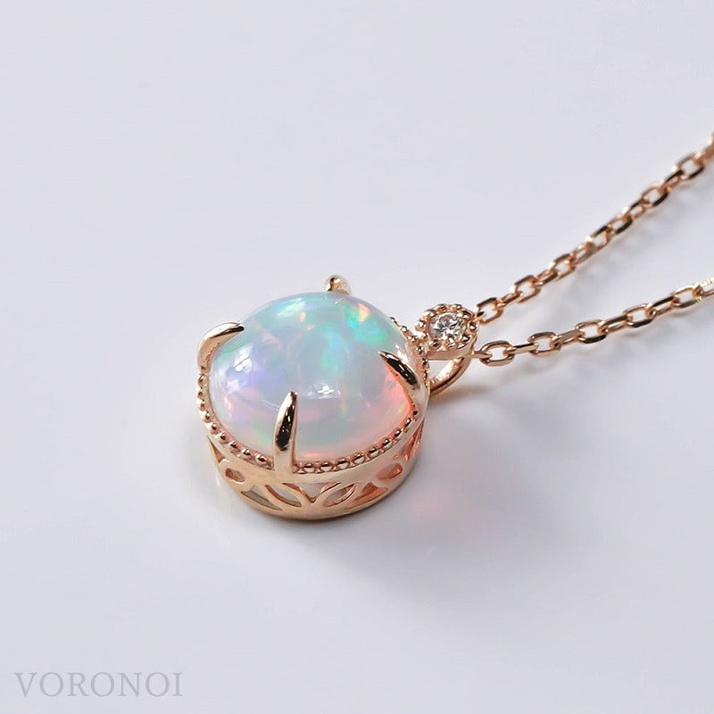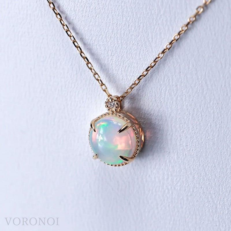 - < 甲府ジュエリー >K18YG オパール カボションカット ダイヤモンドネックレス MINAMOセッティング VO0067PK18