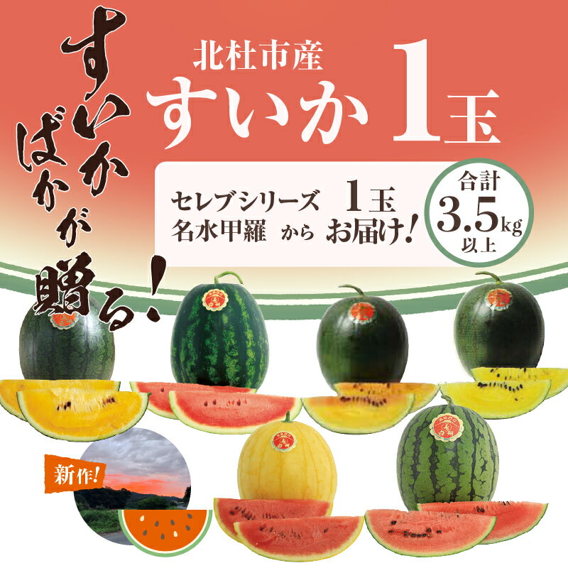 - 【ふるさと納税】 北杜市 白州産 すいか 1玉 3.5~5キロ 7種類からおまかせ 2026年先行予約 フルーツ 数量限定 期間限定 スイカ 甘み すいかばか! こだわりのすいか セレブシリーズ 名水甲羅 令和8年産 西瓜 7月中旬頃~順次発送 産地直送 冷蔵発送 送料無料