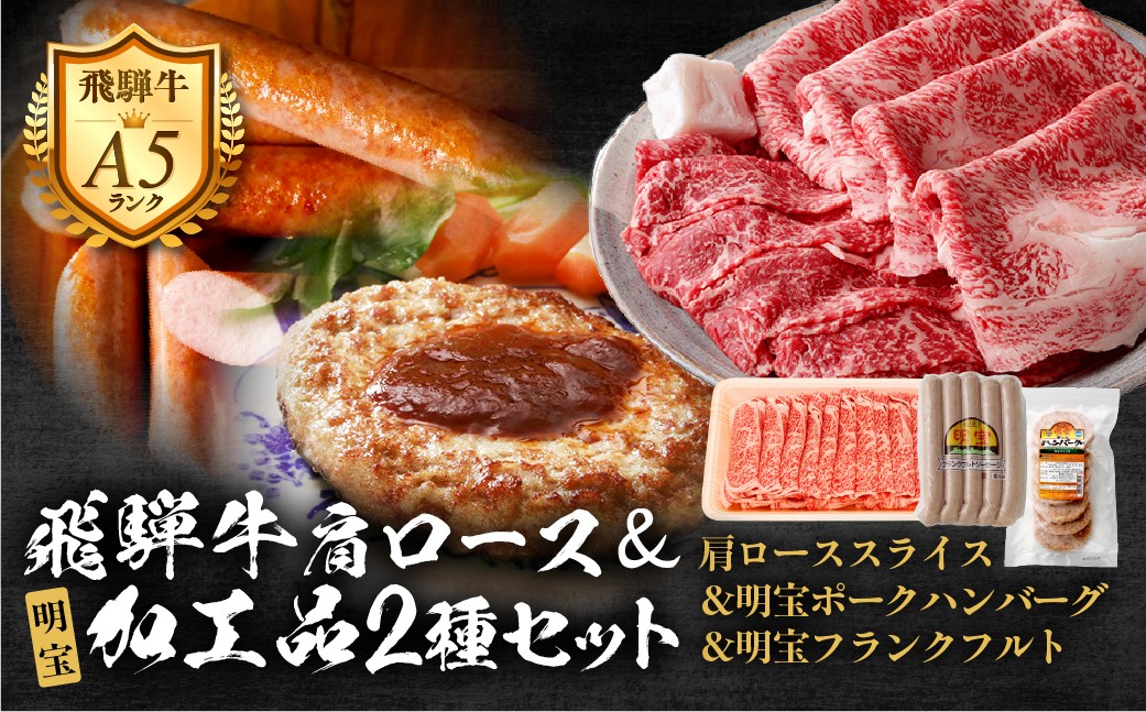 【D-32】郡上産飛騨牛セットE-1[A5等級]肩ローススライス260g×3Pと明宝フランクフルト5本入×2P、明宝ポークハンバーグ8枚 牛肉 飛騨牛ロース 飛騨牛すきやき 飛騨牛しゃぶしゃぶ ロース牛肉 ロースすきやき ロースしゃぶしゃぶ スライス牛肉 スライスロース スライスすきやき スライスしゃぶしゃぶ すきやき牛肉 しゃぶしゃぶ牛肉 ロース ギフト ロース肉 ローススライス すき焼き