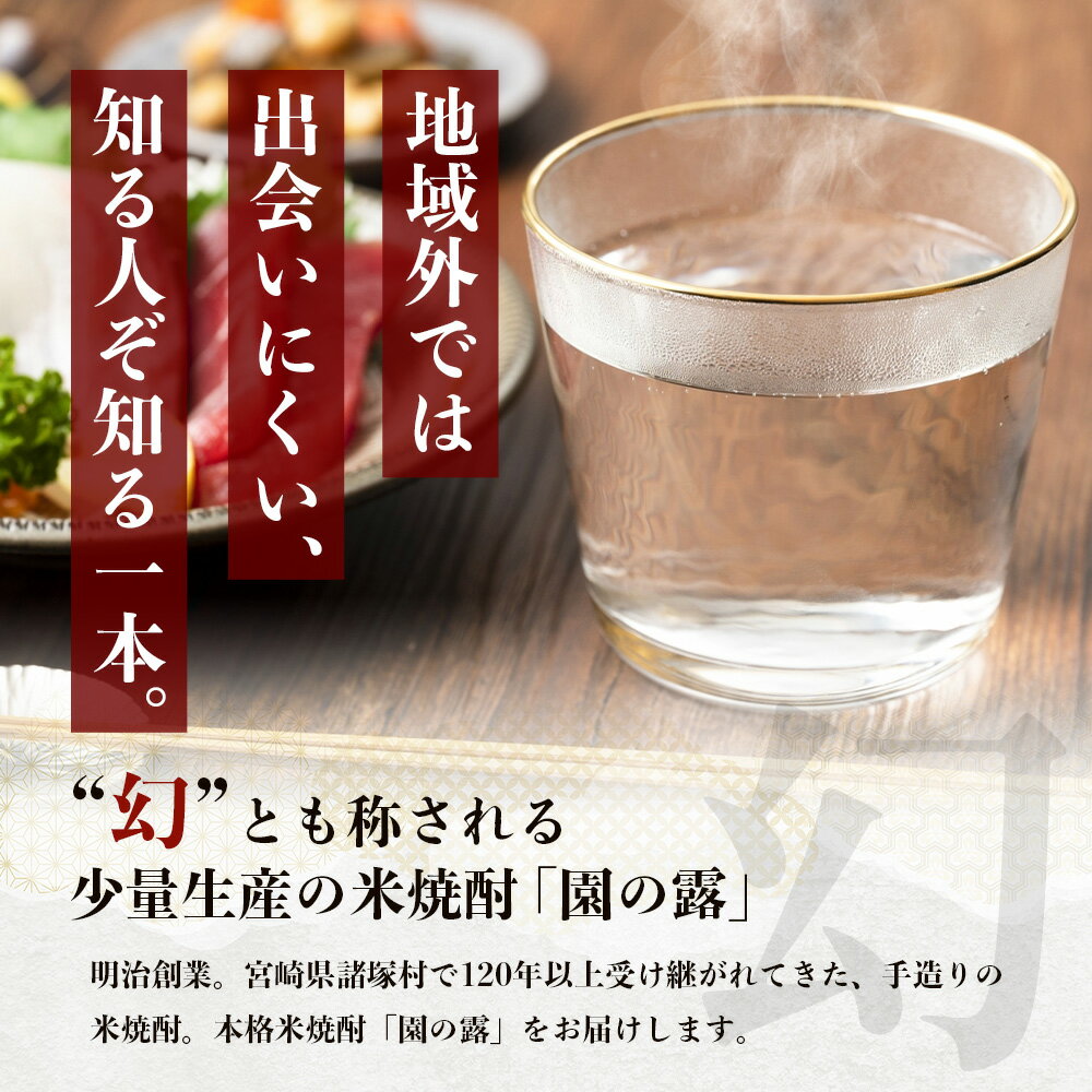 - 【ふるさと納税】\老舗酒蔵の本格米焼酎/ 園の露 25度 1,800ml×1本|焼酎 米焼酎 酒 お酒 アルコール 晩酌 かめ仕込み 木だる蒸留 川崎醸造場 宮崎県 諸塚村 KW-01