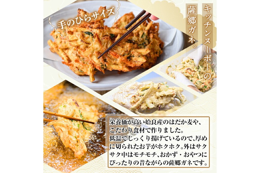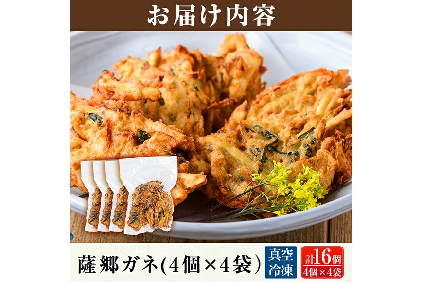 - a872 薩郷ガネ(合計16個)【さつま縫房&キッチンヌーボー】がね 天ぷら さつまいも さつま芋 郷土料理 かき揚げ かきあげ 惣菜 おやつ 冷凍