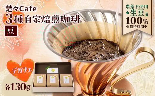 <デカフェ>楚々Cafeの自家焙煎コーヒー豆 3種飲み比べセット(豆)【1367908】