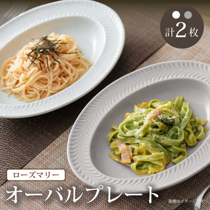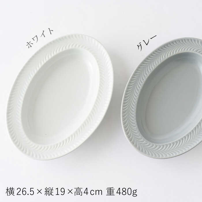 【ふるさと納税】【波佐見焼】ローズマリー オーバル ホワイト・グレー 2枚セット プレート カレー皿 リムプレート 食器 皿【陶芸ゆたか】 [VA116]