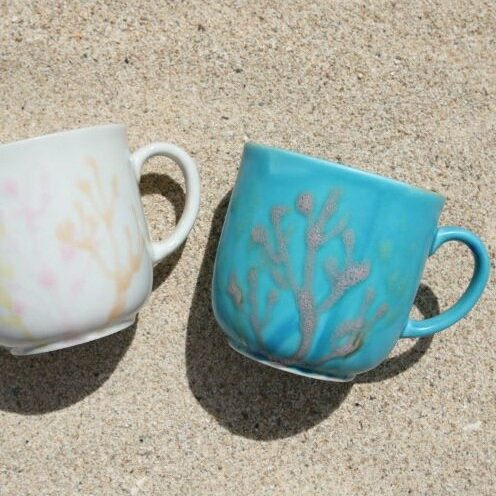 - 【ふるさと納税】【datta.沖縄南の島陶芸工房】珊瑚カップ 青色x純白(ペアセット)