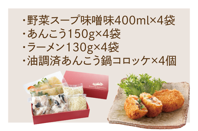 - あんこう鍋 ラーメンセット 4人前 油調済 あんこう鍋 コロッケ 4個 鮟鱇 アンコウ 拉麺 麺 味噌 カジマ かじま 時短 簡単