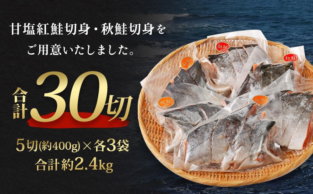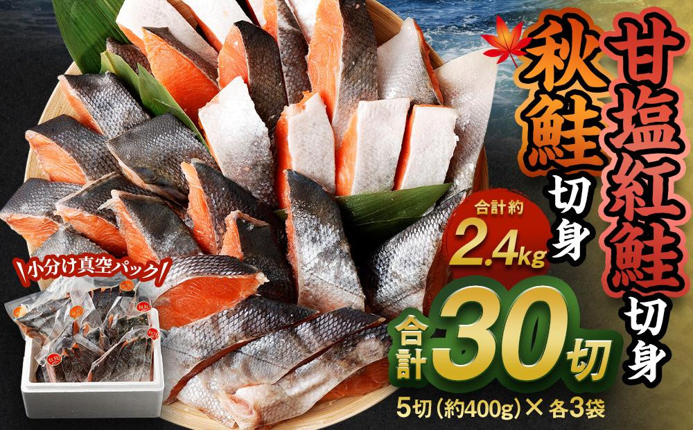 甘塩紅鮭切身・秋鮭切身 各5切(約400g)×3袋 合計30切(約2.4kg)