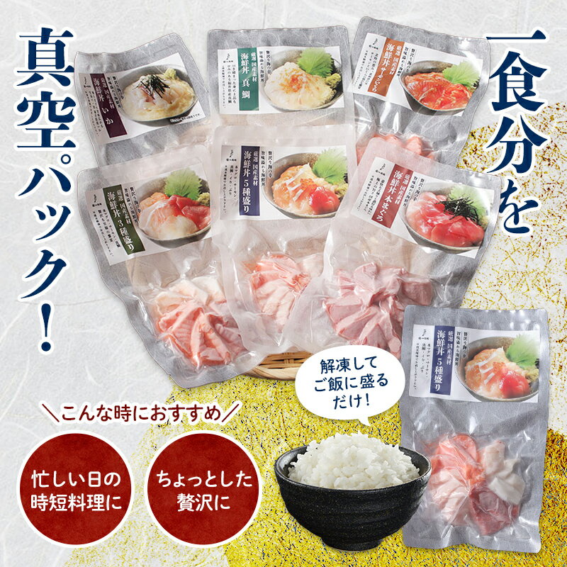 【ふるさと納税】〈指定日着可〉【純国産】数量限定!海鮮丼の具の贅沢6種類セット/ 送料無料 福井県 越前市 武生 冷凍 鮪 まぐろ サーモン タイ 鯛 鮭 いくら タレ付き いか イカ ぶり ブリ とびっこ 発送時期が選べる(18209)