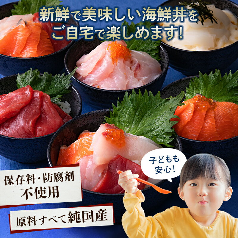 - 【ふるさと納税】〈指定日着可〉【純国産】数量限定!海鮮丼の具の贅沢6種類セット/ 送料無料 福井県 越前市 武生 冷凍 鮪 まぐろ サーモン タイ 鯛 鮭 いくら タレ付き いか イカ ぶり ブリ とびっこ 発送時期が選べる(18209)