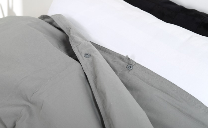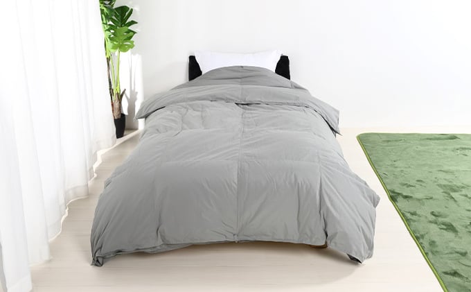 - 羽毛布団シングル二枚合わせ 合掛布団0.8kg/肌掛布団0.3kg オールシーズン対応 グレー