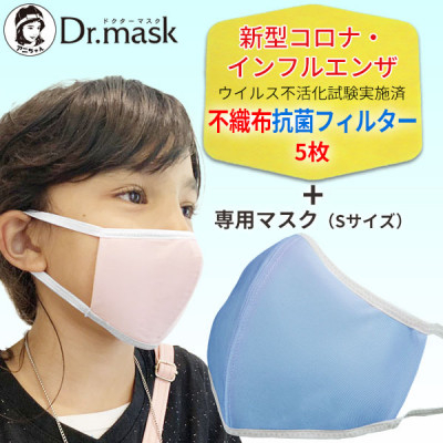 アニちゃんマークのドクターマスク(S(子ども)サックス)+不織布抗菌・抗ウイルスフィルター(5枚)【1291334】