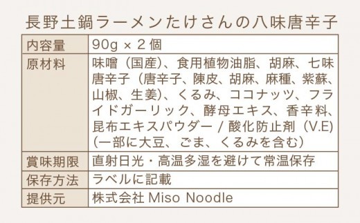 - 長野土鍋ラーメンたけさんの八味唐辛子 90g × 2個