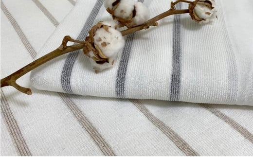 - オーガニックコットン タオルシーツ シングルサイズ(145×230cm)ボーダー グレー SNS-13-GY
