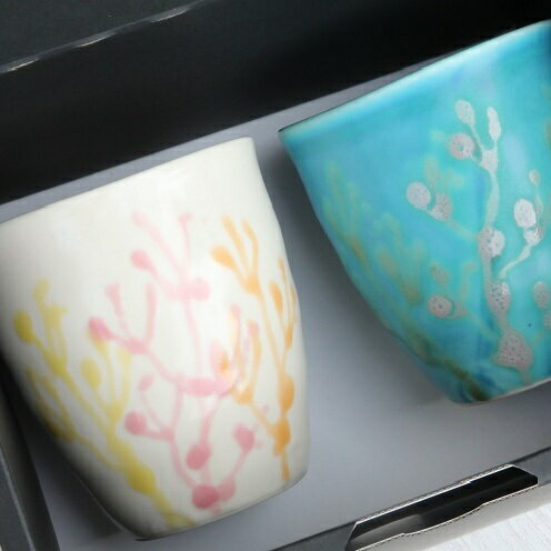 - 【datta.沖縄南の島陶芸工房】珊瑚タンブラー 青色x純白(ペアセット)