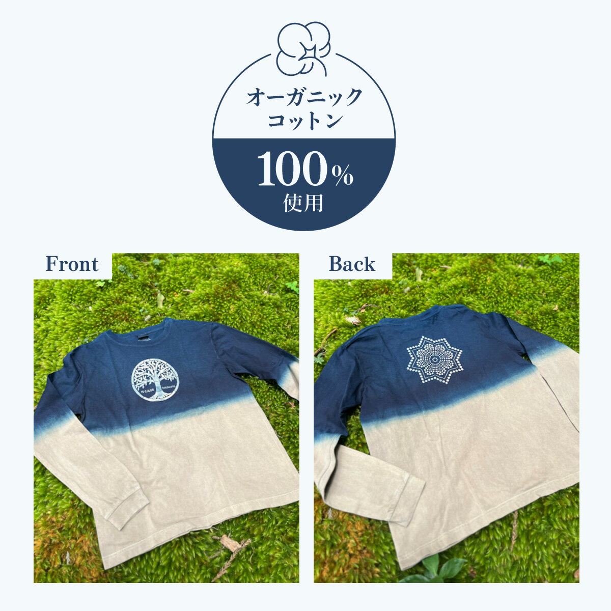 - 【ふるさと納税】 Tシャツ ロングスリーブ S-Lサイズ 藍染 泥染 オーガニックコットン ハイカラー×たけの花 藍 藍染め 泥染め 宍喰祇園染 天然染料