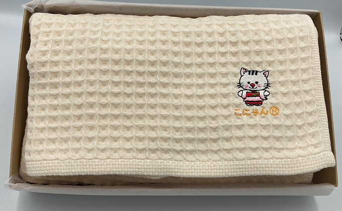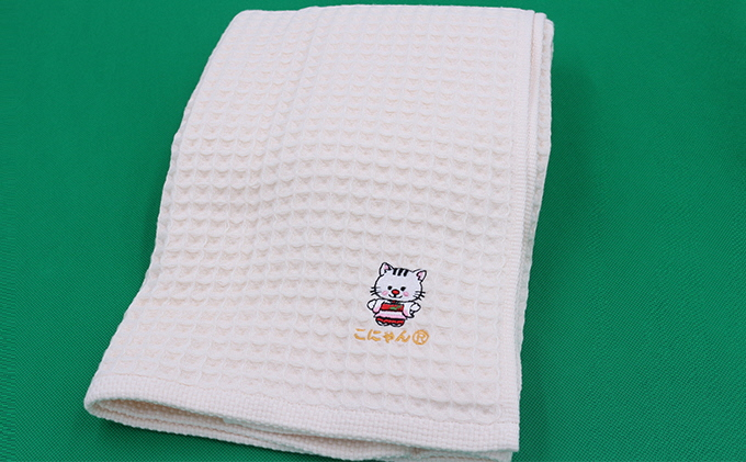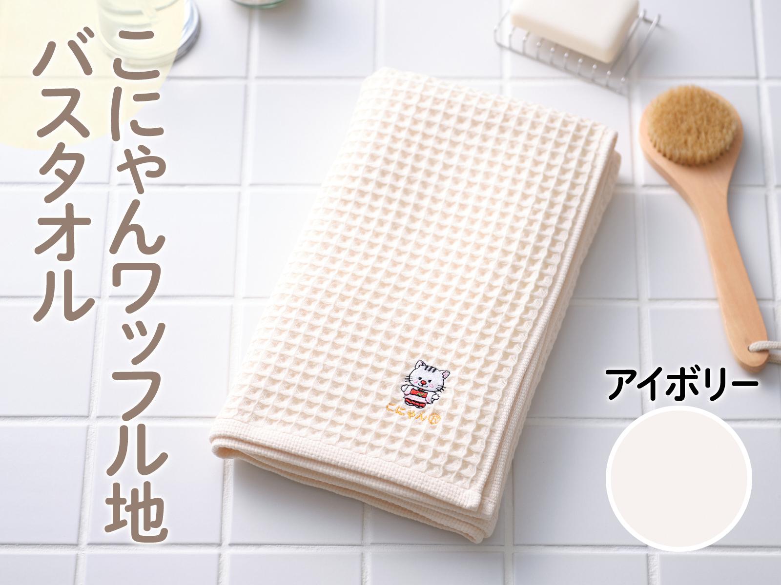 こにゃんワッフル地バスタオル【アイボリー色】[№5748-0268]