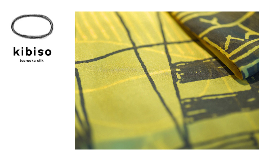 袋ストール(街)/緑×ボルドー 鶴岡シルク(株) B65-806